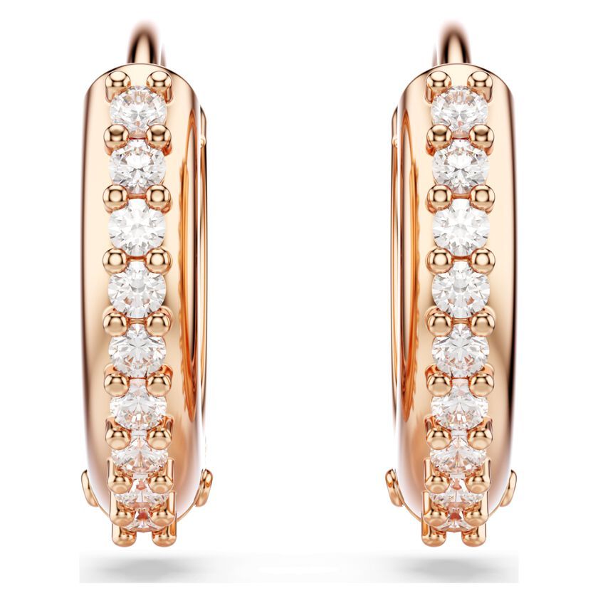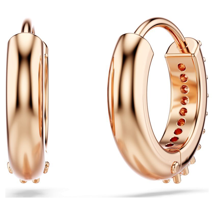 Osvežite svoj stil ovim blistavim mini alkama koje unose trenutnu svetlost u svaki izgled. Izrađene sa sofisticiranom prevlakom u tonu roze zlata, ove minđuše su ukrašene prozirnim Swarovski Zirconia kamenčićima, postavljenim u precizne "prong" okvire na spoljnom delu. Savršen su izbor za svakodnevnu eleganciju ili kao suptilan dodatak večernjoj kombinaciji.