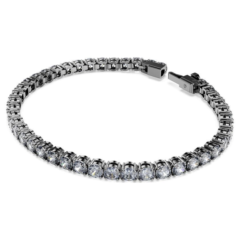 Otkrijte snažnu evoluciju klasične tennis narukvice. Ovaj dizajn sa rutenijumskim premazom donosi puni niz srebrno-sivih Swarovski Zirconia kristala i praktično Matrix Tennis zatvaranje. Upečatljiv komad koji svakom izgledu dodaje dozu intrigantnosti i naglašava vaš stil.Zahvaljujući svojoj neutralnoj estetici, ovaj model se može nositi i kao unisex komad, podjednako elegantan izbor za žene i muškarce koji vole moderan, diskretan luksuz.
