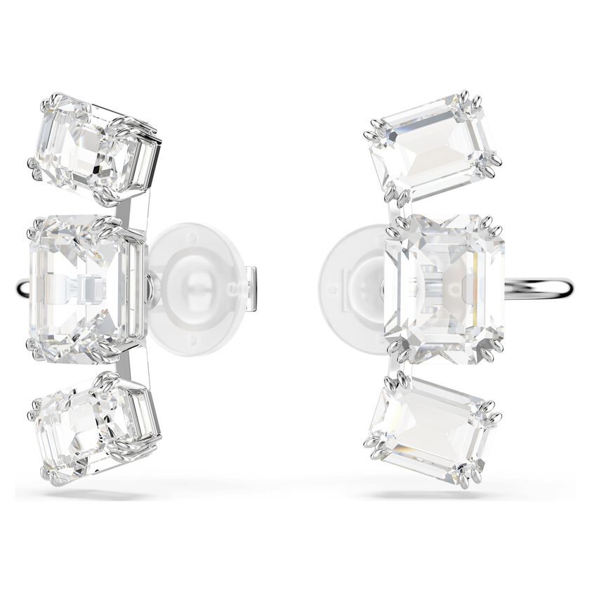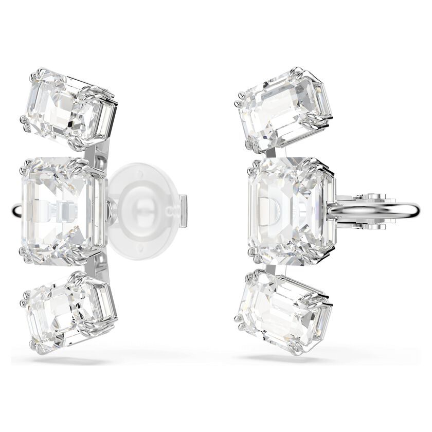Postignite prepoznatljiv Millenia sjaj uz ove blistave minđuše na klip. Svaki komad sa rodijumskom prevlakom krasi trio prozirnih kristala osmougaonog reza, postavljenih u vertikalnim i horizontalnim nizovima. Savršen način da svom izgledu dodate dozu čiste svetlosti i elegancije.