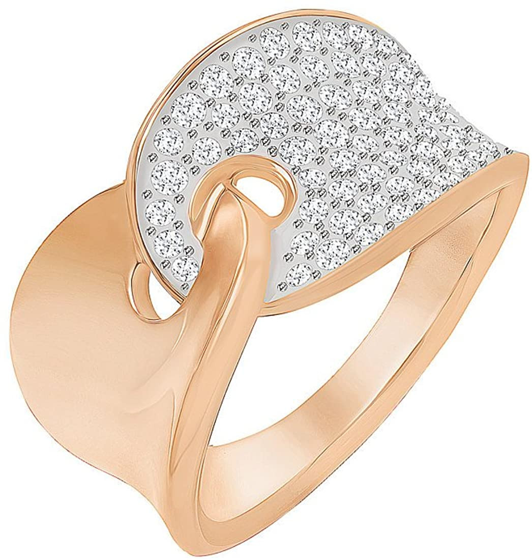 Ovaj Guardian prsten u beloj i rose-gold nijansi odiše smelom elegancijom i prepoznatljivim Swarovski sjajem. Dizajn je inspirisan ikonskim labudom, čija se graciozna silueta suptilno prepliće sa linijama prstena, stvarajući sklad luksuza i simbolike. Gornji deo je bogato ukrašen blistavim kristalima koji reflektuju svetlost iz svakog ugla, dok metal u tonu roze zlata pruža toplinu i sofisticiran kontrast.