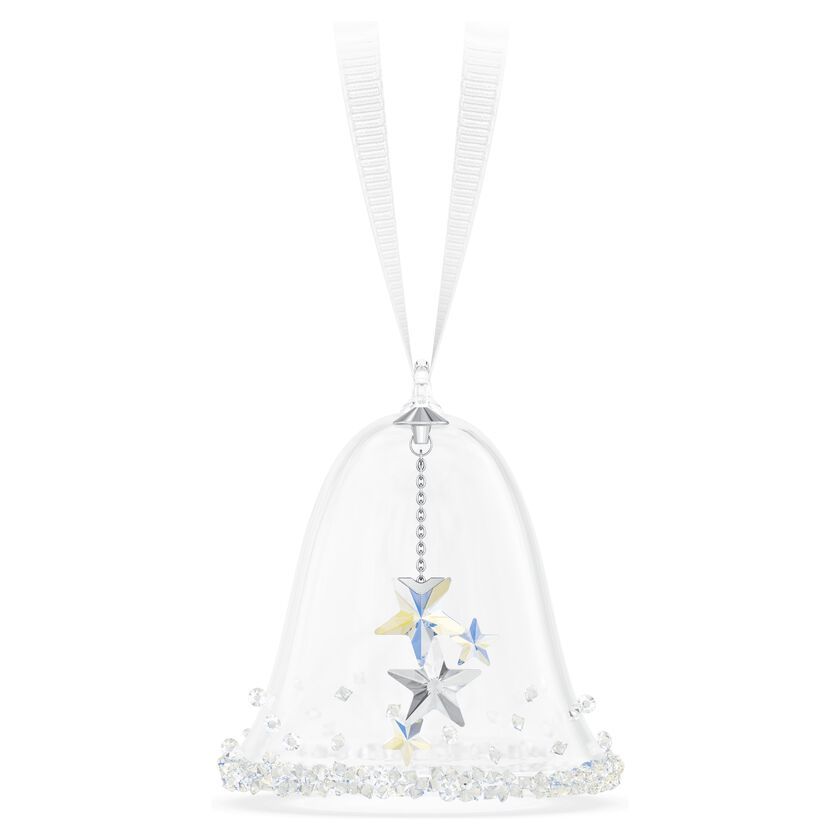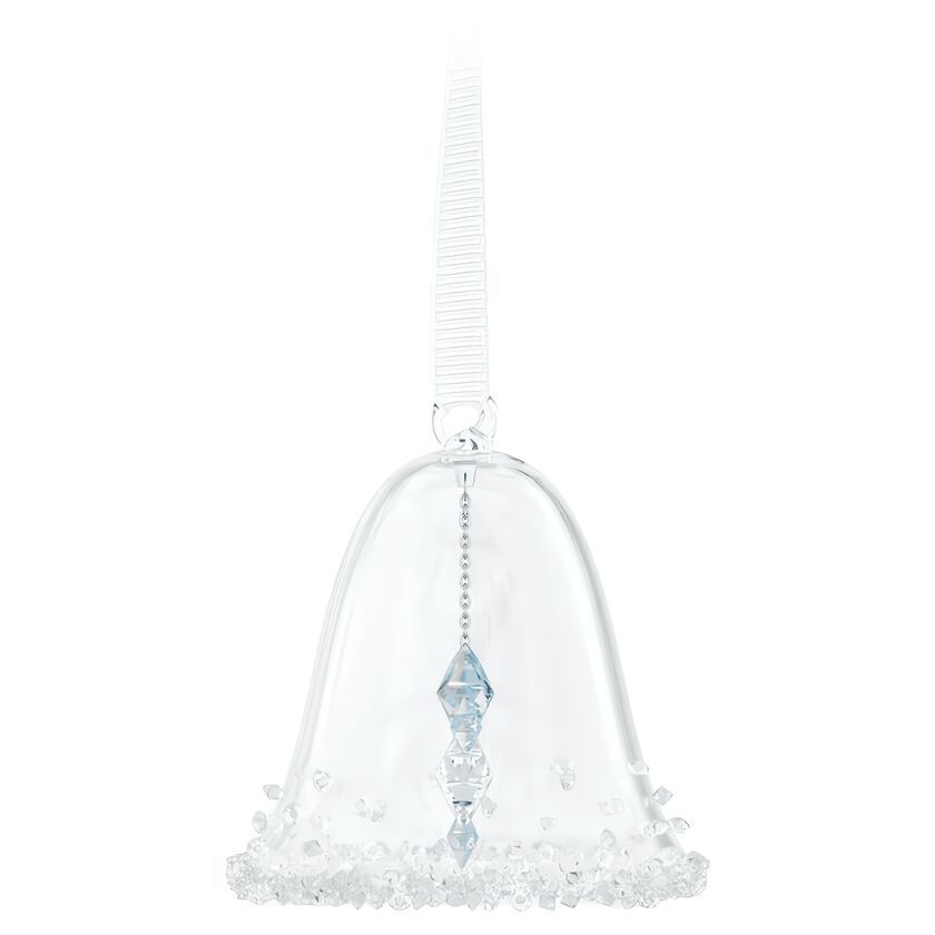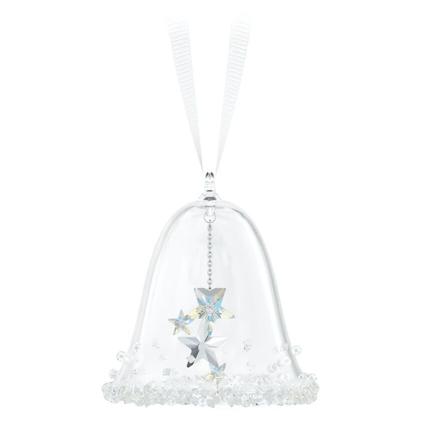 Po prvi put, Swarovski je kreirao minijaturnu verziju svog tradicionalnog ukrasa u obliku zvona. Besprekorno stakleni dizajn prekriven je sa oko 300 sitnih kristala, dok se u unutrašnjosti nalaze zvezde izrađene sa 108 faseta i zadivljujućim Aurora Borealis efektom. Ukras je okačen na belu grosgrain traku pričvršćenu za kapicu od metalne završnice u srebrnoj boji, stvarajući savršen prikaz nežne lepote u vašem domu.