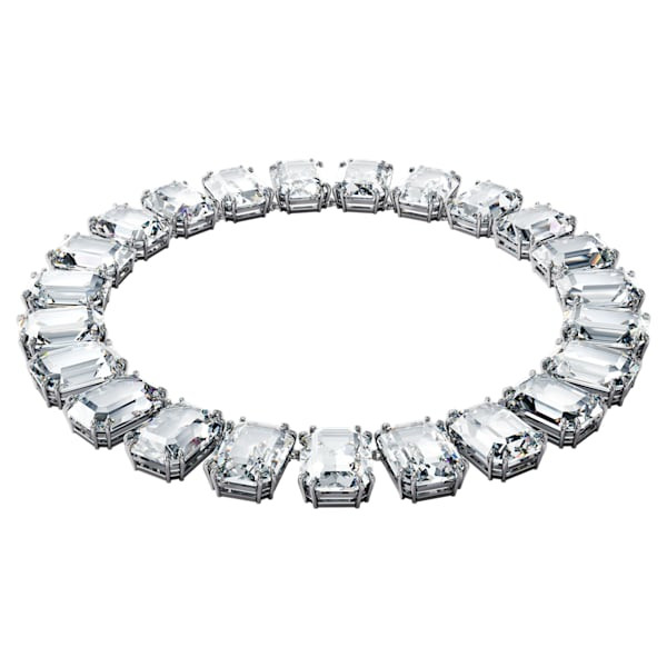 Otkrijte svoj novi osnovni komad garderobe uz ovu upečatljivu ogrlicu. Dizajnirana je sa nizom prozirnih kristala oktagonalnog reza, koji su pažljivo smešteni u „prong“ (zubaste) okvire sa prevlakom od rodijuma. Završena je skrivenim zatvaranjem za besprekoran, neprekidan efekat. Vaš svakodnevni stil dobiće potpuno novi život čim dodate ovu ogrlicu kao blistav završni detalj.