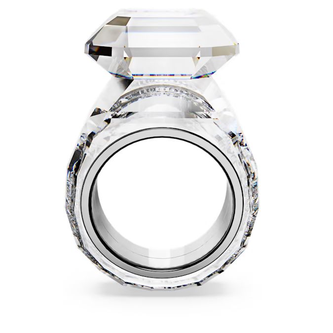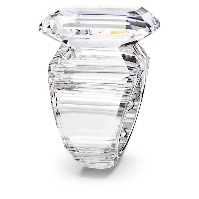 Ovaj blistavi Lucent prsten kreiran je da pruži maksimalan sjaj i igru svetlosti. Stručno isečen sa 138 faseta, kristalizovani dizajn spaja prelepu, čistu boju sa umetkom od nerđajućeg čelika. Smelo šik, ovaj prepoznatljivi prsten u osmougaonom sečenju nudi bezbroj mogućnosti stilizovanja za svaki izgled koji odaberete.