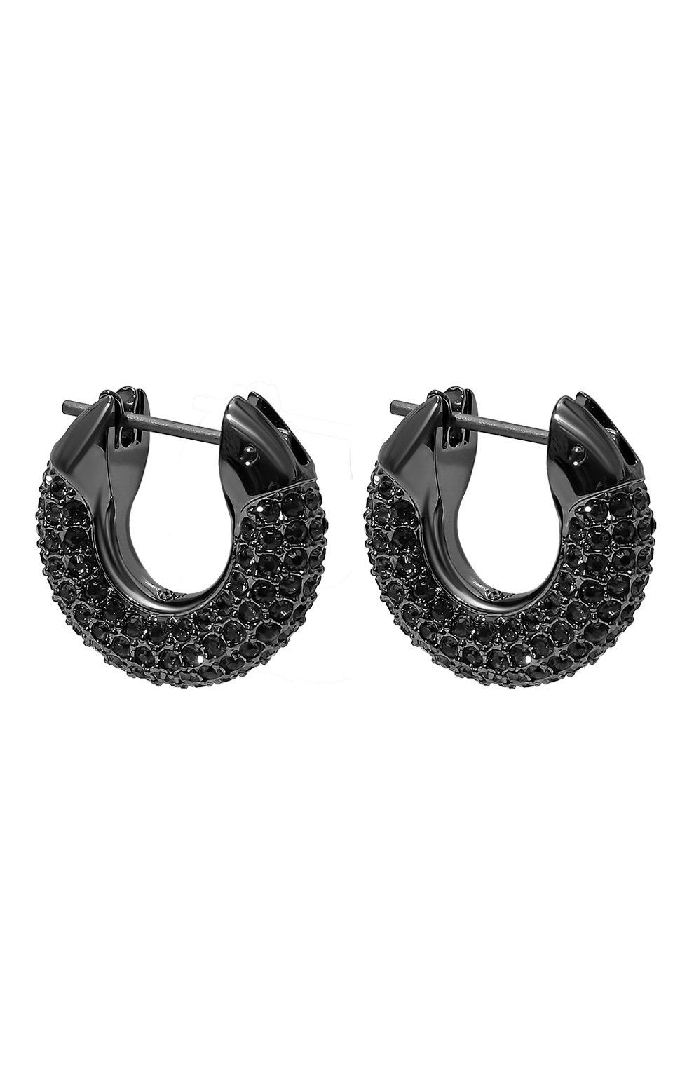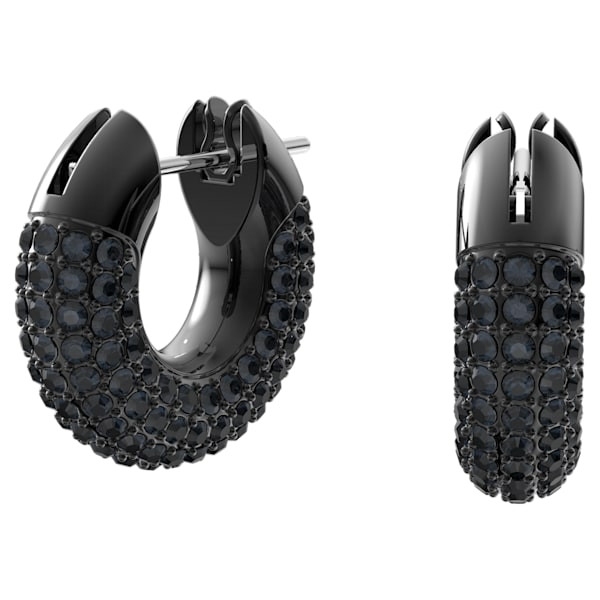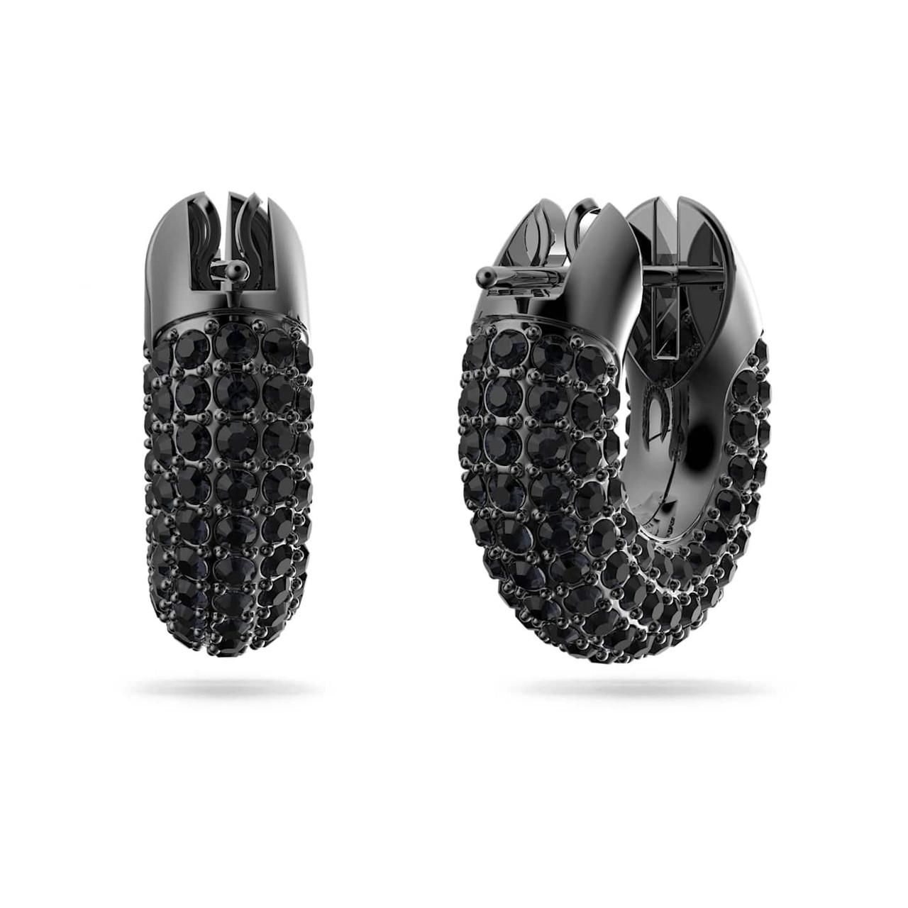 Dextera hoop earrings, Pavé, Black, Ruthenium plated