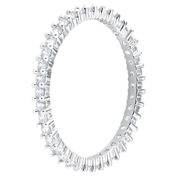 Ovaj luksuzni komad nakita iz Vittore kolekcije predstavlja samu definiciju prefinjenosti. Nežni, rodijumirani prsten ukrašen je blistavim belim kristalnim chaton-ima koji se nižu celim obimom prstena (all-around dizajn). Savršen je primer trenda znatnog, ali upečatljivog nakita. Dizajniran je da se nosi samostalno za minimalistički izgled ili u kombinaciji sa dva ili tri prstena (tzv. "stacking" stil) za postizanje maksimalnog sjaja i efekta.Njegov tanak i grazilan oblik omogućava vam da kombinujete različite boje metala (srebrna, gold, rose-gold) na istom prstu.