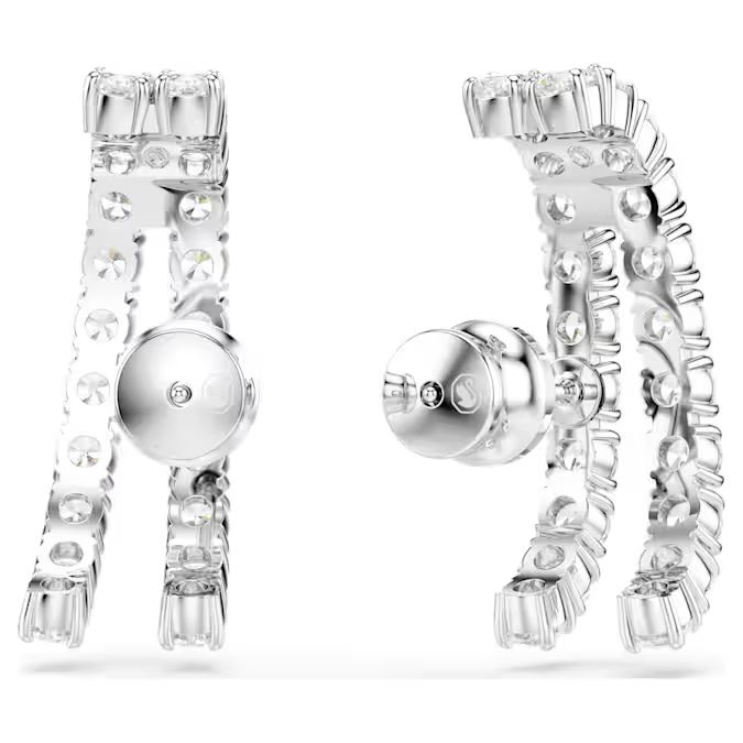 Gde se susreću ekstremna elegancija i blistava svetlost, tu nastaju ove zadivljujuće Matrix minđuše. Svaka minđuša sa rodijumskom prevlakom sastoji se od dve paralelne trake, gusto ukrašene prozirnim Swarovski cirkonima okruglog reza. Ovaj dizajn stvara efekat dvostrukog sjaja, čineći ih očaravajućim izborom za iskazivanje sofisticirane strane vašeg stila.