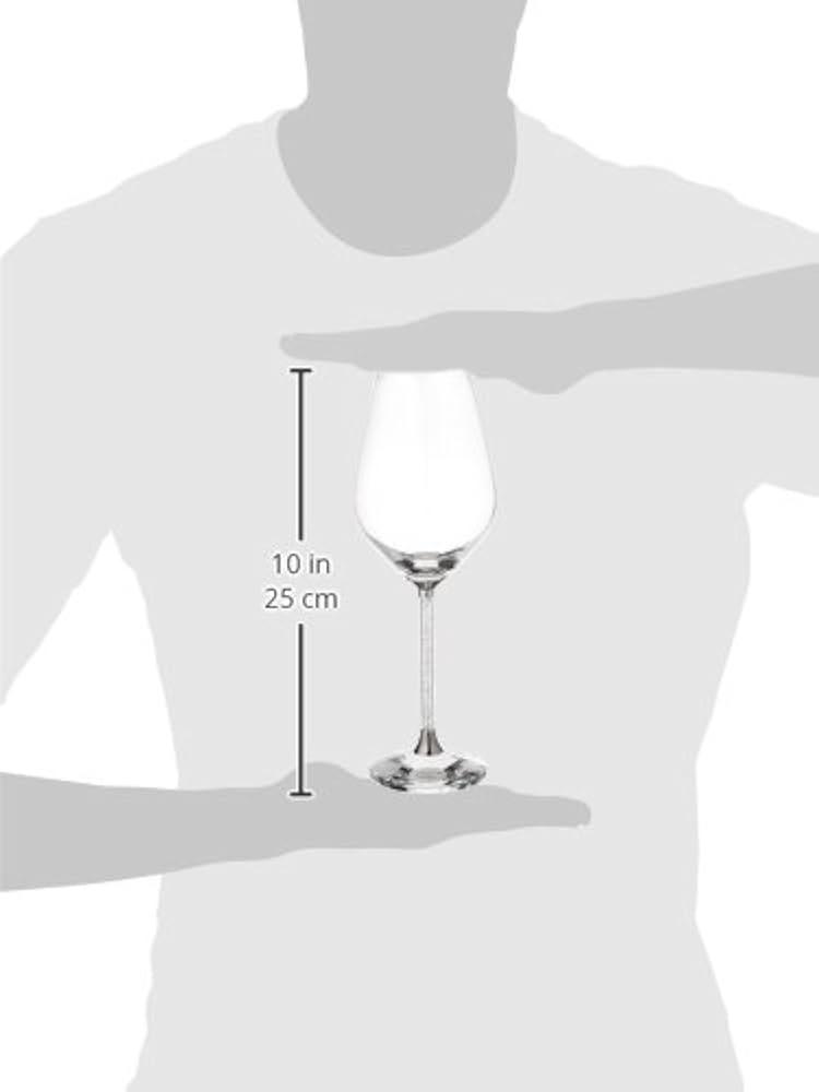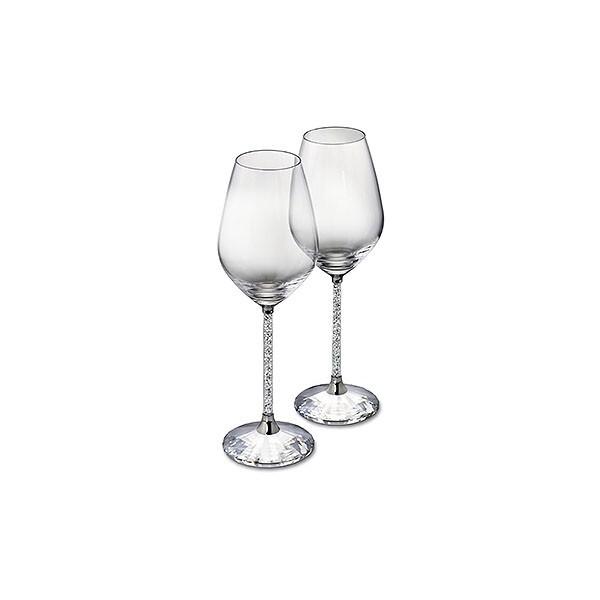 Učinite svoja slavlja nezaboravnim uz ovaj set od dve moderne i sofisticirane čaše za crno vino. Njihove drške su ispunjene providnim kristalima za blistav efekat, a baza je izrađena od velikog fasetiranog providnog kristala.