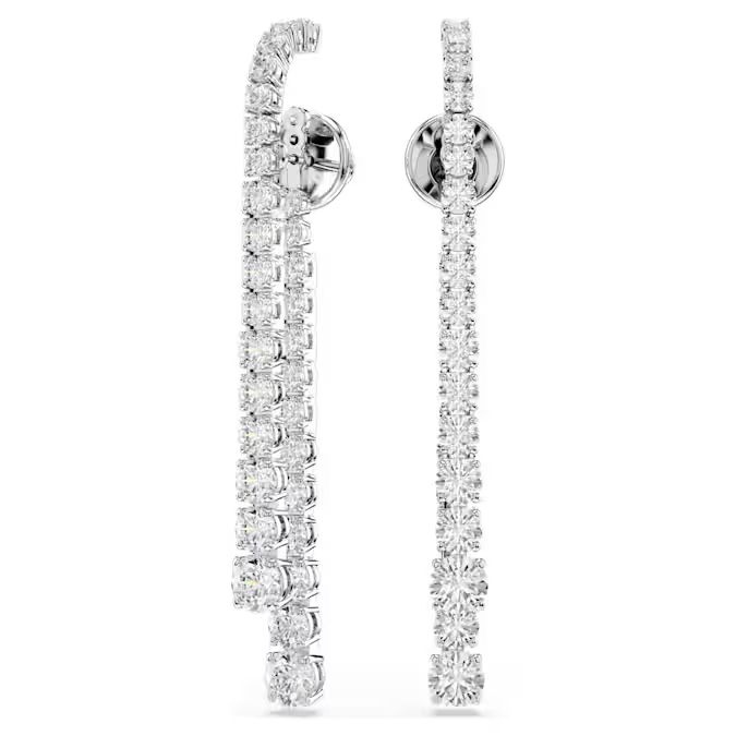 Ove dramatične minđuše iz Matrix kolekcije predstavljaju pravi "trag svetlosti" i vrhunski su primer prepoznatljivog Swarovski stila. Svaka minđuša se sastoji od dva elegantna niza Swarovski cirkonija na rodijumskoj prevlaci, postavljenih u gradijentu – od manjih ka većim kamenčićima. Ovaj dizajn stvara efektan i smeo izgled, pružajući vrhunsku eleganciju i blistavost idealnu za svečane prilike.
