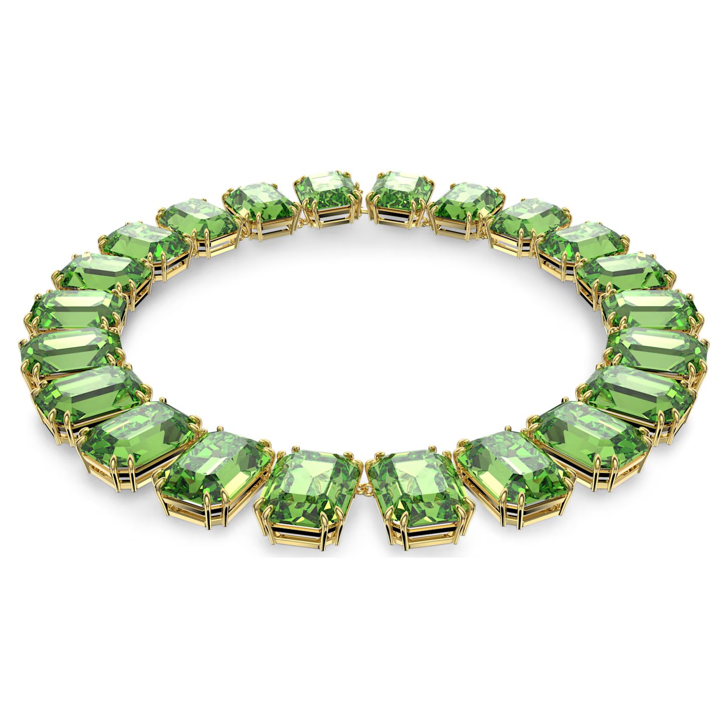 Ogrlica se ističe nizom predimenzioniranih kristala u oktagon rezu, čija intenzivna zelena boja stvara dramatičan kontrast sa luksuznom pozlatom. Dizajnirana je da unese prizmatični talas boja u svakodnevni stil, a najbolje dolazi do izražaja kada se nosi preko monohromatske odeće. Posebnu pažnju privlači inovativna i sigurna „slide lock“ kopča sa D-prstenom, koja osigurava da ovaj masivni komad nakita savršeno i bezbedno stoji uz vrat, kombinujući funkcionalnost sa vrhunskom estetikom Collection I serije.