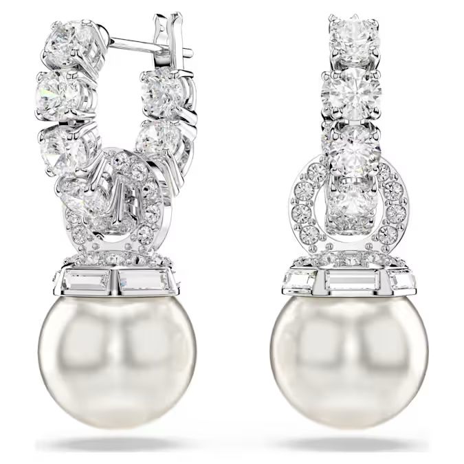 Dizajnirane da naglase eleganciju, ove minđuše kombinuju formu „tennis“ alki sa dodatnim visećim prstenovima koji su u potpunosti prekriveni blistavim pavé nizom Swarovski cirkonija. Kao završni detalj čiste otmenosti, u srcu dizajna nalaze se Swarovski kristalni biseri, koji svojim svilenkastim sjajem daju prepoznatljiv klasični pečat. Rodijumska prevlaka obezbeđuje besprekoran srebrni ton, čineći ih idealnim za svaku priliku – od poslovnih sastanaka do svečanih događaja.