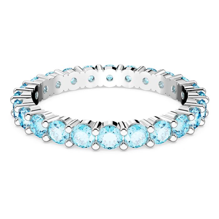 Dizajniran sa fokusom na živopisnost, ovaj prsten krase blistave Swarovski cirkonije u nežnoj akvamarin plavoj boji. Kamenje je precizno poređano duž celog obruča sa rodijumskom završnom obradom, koja svojim srebrnim sjajem dodatno ističe prozirnost i boju cirkonija. Njegova delikatna forma čini ga savršenim za svakodnevno nošenje, dok mu specifična nijansa plave daje unikatan karakter.