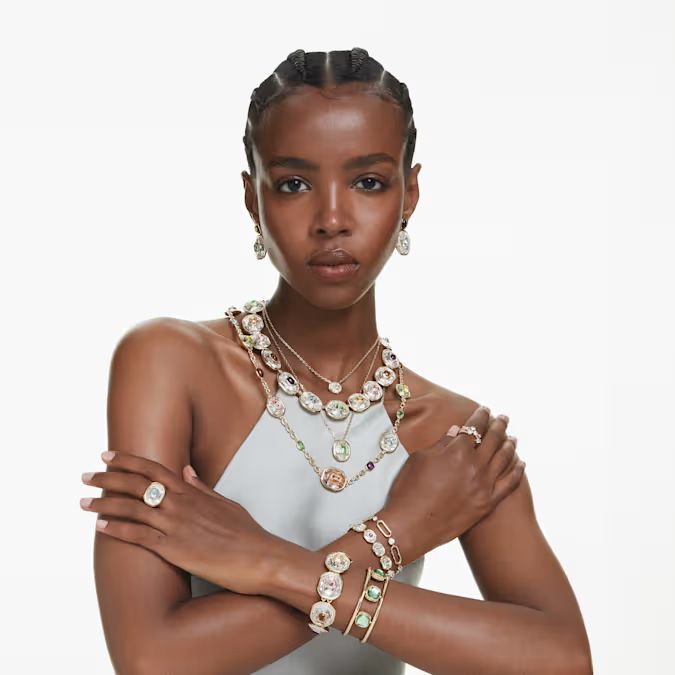 Razigrana i upečatljiva, ova Chroma Twist narukvica otvorenog dizajna predstavlja zabavan primer Swarovski savoir-faire umeća. Nudeći bezbroj mogućnosti stilizovanja, model sa pozlatom u zlatnom tonu ima niz zelenih Swarovski ReCreated™ kristala sa jedne strane, dok se sa druge nalaze plavi Swarovski ReCreated™ kristali i vibrantni ružičasti kristali. Jednostavno je okrenite kako biste je prilagodili raspoloženju ili odevnoj kombinaciji. Svestran izbor koji se savršeno uklapa uz druge reverzibilne komade iz iste kolekcije.