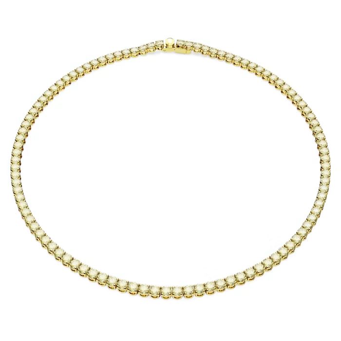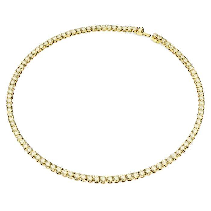 Ovaj model iz Matrix Tennis porodice odlikuje se savršenom fluidnošću i prefinjenom završnom obradom. Niz precizno brušenih Swarovski cirkonija postavljen je na postolje sa zlatnom prevlakom , što ogrlici daje visok sjaj i otpornost. Dizajnirana je da leži ravno uz kožu, prateći svaki vaš pokret, čime se postiže efekat dijamantske ogrlice koja nikada ne gubi na aktuelnosti.