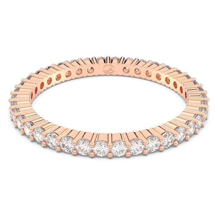 Spoj blistavih, okruglih Swarovski cirkonija i završne obrade u boji ružičastog zlata stvara izgled koji odiše toplinom i prefinjenošću. Specifičnost ovog modela je dizajn koji omogućava da kamenčići sijaju sa svih strana, pružajući neprekidan niz svetlosti oko vašeg prsta. Njegova nežna forma čini ga savršenim za svakodnevno nošenje, ali i za kombinovanje sa krupnijim komadima nakita radi postizanja efektnog kontrasta.