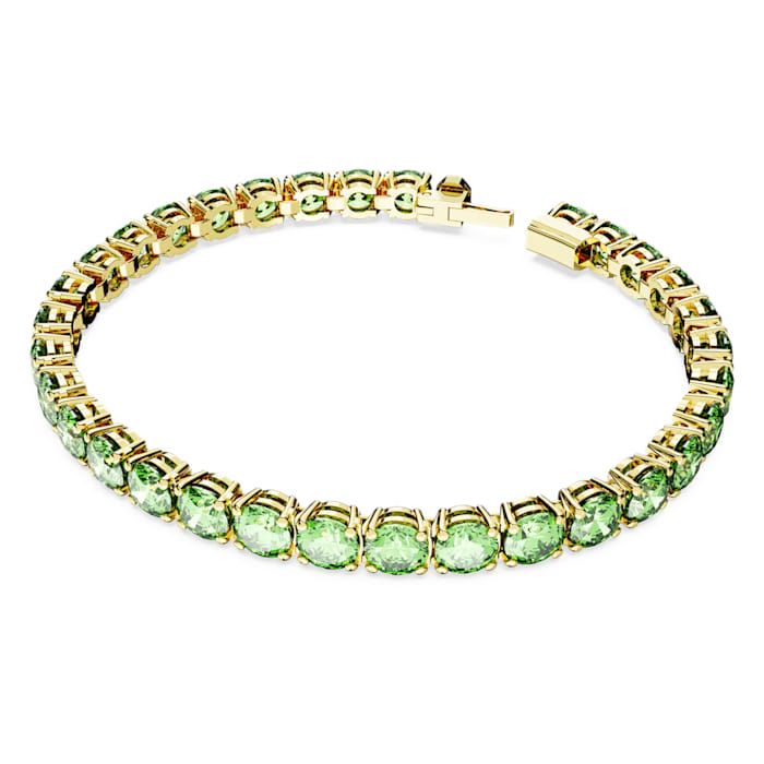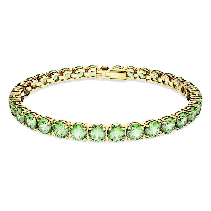 Prateći savremenu fluidnost Matrix Tennis porodice, ova blistava narukvica obavija zglob živopisnom bojom koja reflektuje svetlost. Zeleni kamenčići okruglog reza postavljeni su u dizajn u zlatnom tonu u elegantnoj, ujednačenoj liniji, stvarajući komad koji je dovoljno upečatljiv da se nosi samostalno, a dovoljno jednostavan za kombinovanje sa drugim nakitom.