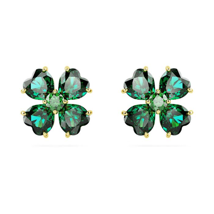Unesite dašak magije u svoj stil uz ove blistave Idyllia minđuše. Dizajnirane u obliku deteline sa četiri lista, simbolizuju sreću i energiju prirode. Svaki komad sa pozlatom u tonu zlata krase četiri zelena kristala u obliku srca, koji se spajaju oko centralnog kamena stvarajući savršen cvetni motiv.Ove diskretne, ali upečatljive "stud" minđuše savršen su izbor za svakodnevni glamur ili kao poklon koji nosi lepu poruku.