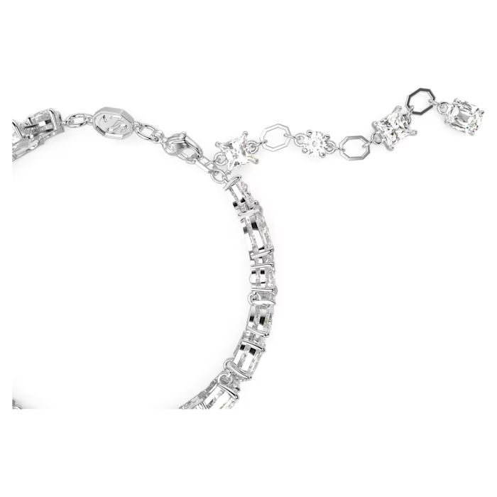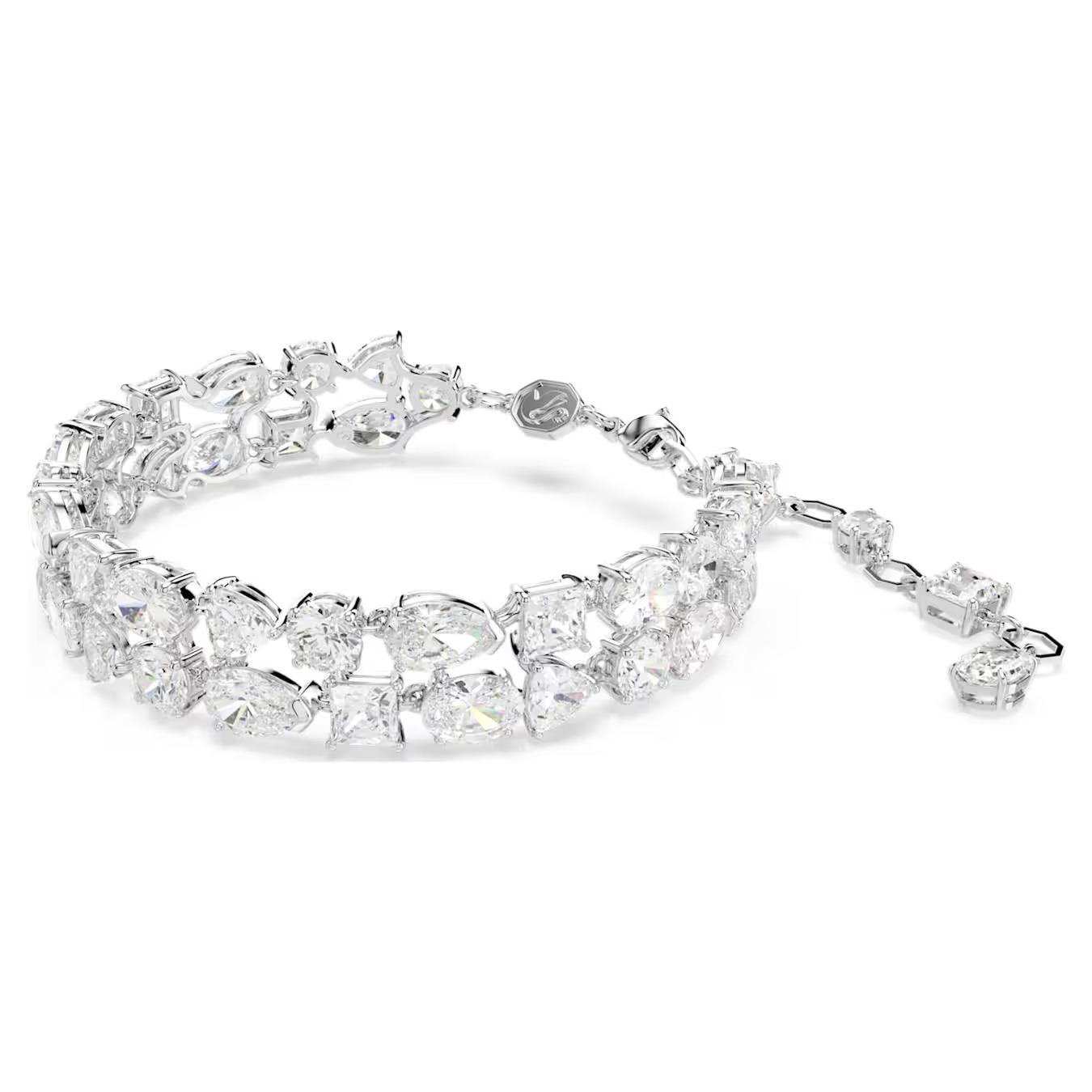 Učinite svoj stil nezaboravnim uz ovu raskošnu narukvicu sa dvostrukim nizom. Kombinacija rodijumske prevlake i dramatičnog miksa različitih rezova Swarovski Zirconia kamenja stvara efekat čistog luksuza. Sa širinom od 1.2 cm, ovaj model dominira zglobom, dok kristalni produžetak dodaje prefinjenost svakom pokretu.