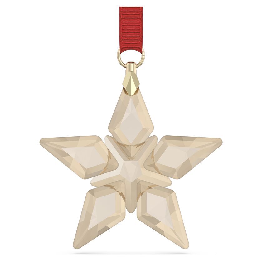 Uživajte u nežnom dodiru praznične magije sa ovim ukrasom u obliku male zvezde, inspirisanim harmonijom prirode i nauke, oživljenim besprekornom stručnošću i preciznošću Swarovski. Dizajn zlatne zvezde za 2023. godinu izrađen je sa 97 faseta i okačen na crvenu traku sa pozlaćenim detaljima. Ovaj čudesni ukras predstavlja elegantan poklon za dragu osobu ili će uneti malo prazničnog sjaja u vaš dom.