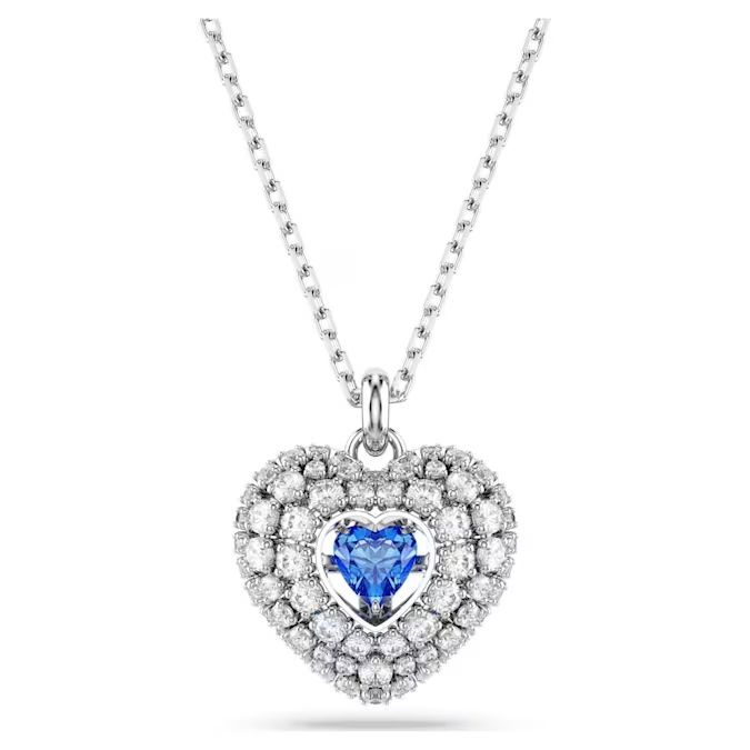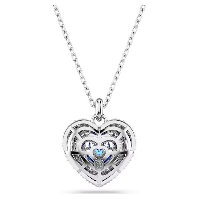 Dva srca postaju jedno u ovom romantičnom Swarovski privesku. Motiv sa rodijumskom prevlakom izrađen je u „cage“ dizajnu koji mu daje maksimalan volumen. Kako bi se dodatno naglasio zaobljeni efekat, ukrašen je okruglim prozirnim Swarovski Zirconia kristalima postavljenim uz pomoć blistave chatonnage tehnike, dok u centru svetlost iz svakog ugla hvata plavi kristal u obliku srca koji „pleše“. Savršen način da nekome posebnom kažete „volim te“.