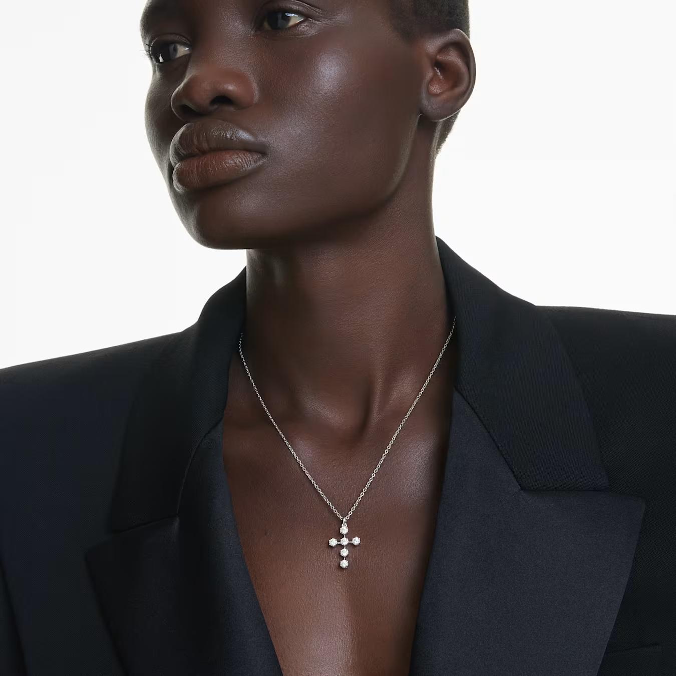 Izrazite svoju ličnost kroz nakit koji nosi značenje. Ovaj elegantni privezak iz porodice Insigne reinterpretira klasičan motiv krsta kroz prizmu savremenog luksuza. Ukrašen sa šest blistavih okruglih Swarovski Zirconia kamenčića, on hvata svetlost iz svakog ugla, dok rodijumska prevlaka daje čitavom komadu onaj prepoznatljivi, hladni sjaj "finog nakita". Detalj koji ga izdvaja je dodatni kristal na samom kraju produžetka lančića, koji diskretno blista na vašim leđima. Ekspresivan, moćan i bezvremenski.
