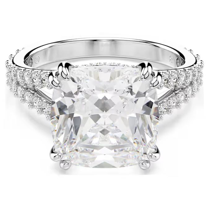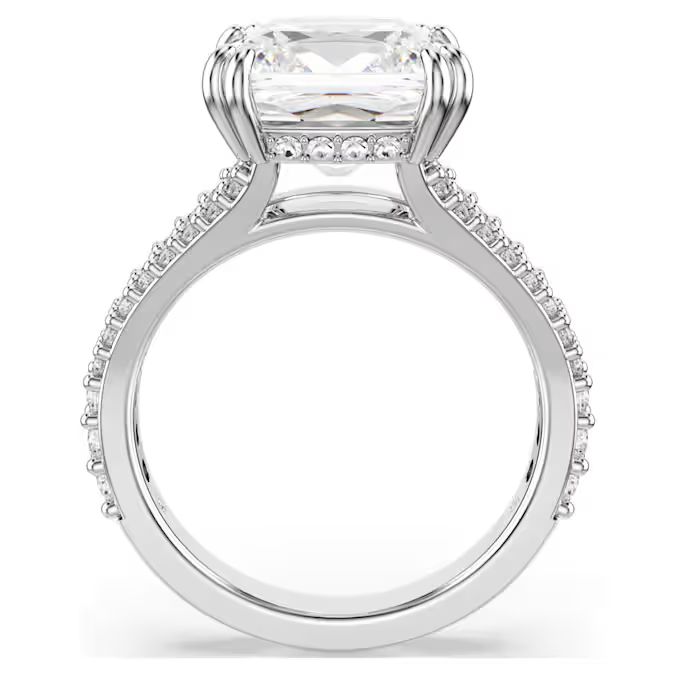 Ovaj fascinantni koktel prsten iz porodice Stilla dizajniran je za reflektore. Postižući savršen balans između dramatičnog i rafiniranog, prsten krasi izuzetan kvadratno sečeni kamen postavljen u ležište sa dvostrukim zupcima (double-prong).Poseban dodatak luksuzu je galerija prstena ukrašena blistavim pavé kristalima, dok završna obrada u srebrnom tonu (rodijumska prevlaka) pruža moderan i čist izgled. Bez obzira na priliku, ovaj prsten donosi sofisticiran sjaj svakom vašem pokretu.