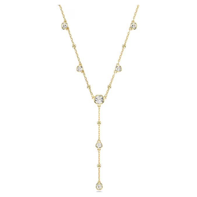 Svojim prepoznatljivim oblikom, ova Imber ogrlica predstavlja savršen dodatak vašoj kolekciji nakita. Dizajn karakteriše lančić sa pozlatom u zlatnom tonu, ukrašen nizom sjajnih metalnih kapljica i blistavih okruglo sečenih kristala u ispupčenom "puffy" bezel okruženju.Poseban detalj je delikatni niz koji elegantno pada na sredini, dok je jedan Swarovski cirkon postavljen na produžetak lančića radi dodatnog luksuza. Za maksimalan efekat, uparite ovaj komad sa Imber minđušama i postignite savršeno usklađen stil.