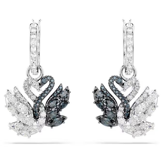 Lepota dobija krila u ovim amblematičnim minđušama, kreiranim u čast čuvenog Swarovski logotipa. Svaki komad visi sa delikatnih pave alkica i prikazuje dva isprepletana labuda u kombinaciji rodijumske i rutenijumske prevlake. Labudovi su u potpunosti ukrašeni crnim i belim Swarovski Zirconia kamenjem u okruglim i marquise (izduženim) rezovima. Dodajte ove legendarne siluete svom stilu za čist dodir elegancije i kontrasta.Dizajn sa isprepletanim labudovima simbolizuje neraskidivu povezanost, što ih čini savršenim poklonom za posebne prilike.