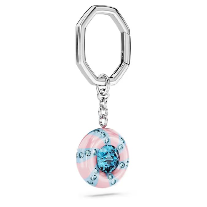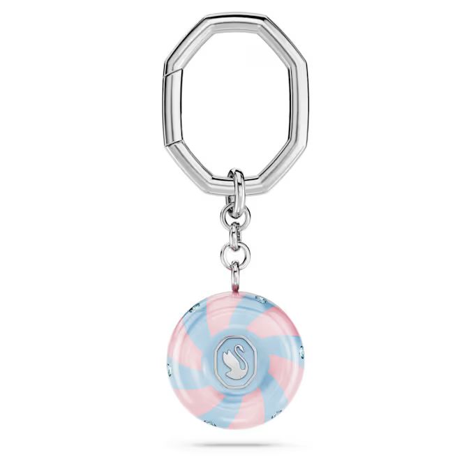 Inspirisan veselim bojama slatkiša, ovaj privezak iz porodice Dulcis unosi radost u svaki stil. Okrugli motiv zakačen je na metalni lančić sa sjajnom srebrnastom prevlakom (rodijumom). Privezak krase razigrane ružičaste i plave pruge, dok se u samoj sredini nalazi jedan krupniji kristal. Oko centralnog kristala pruža se očaravajući krug ispunjen manjim plavim kristalima.Možete ga zakačiti na torbu ili ključeve, a njegov upečatljiv dizajn sa plavim kristalima učiniće da vaši dodaci izgledaju moderno i jedinstveno.