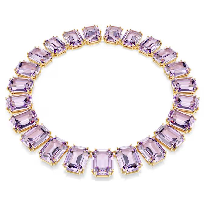 Prepusti se radosnom sjaju uz ovu "pop of color" ogrlicu iz Millenia porodice. Ovaj komad nakita je stvoren za dane kada želiš da zračiš – kombinacija žive ljubičaste nijanse i preciznog dizajna čini ga neodoljivim modnim izborom.Ova ogrlica sa rodijumskom prevlakom oživljena je energičnim nizom kristala oktogonalnog reza u prelepoj nijansi ljubičaste. Poseban novitet je inovativna kopča od kobalt hroma na zadnjoj strani, koja ne samo da omogućava lako podešavanje dužine, već dodaje i moderan industrijski šmek celokupnom dizajnu.