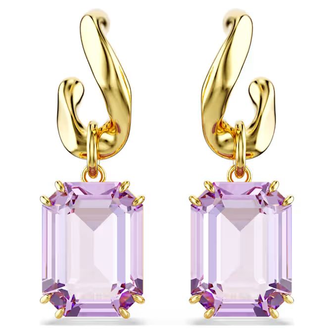 Pojačajte svoj sjaj uz ove Millenia minđuše u prelepoj ljubičastoj nijansi. Svaki komad sa pozlatom u tonu zlata karakteriše otvorena karika lanca koja drži kristal u prepoznatljivom osmougaonom obliku. Kristali su smešteni u elegantna metalna ležišta (prong setting) i dizajnirani su tako da reflektuju svetlost iz svakog ugla, pružajući vrhunski intenzitet boje i sjaja.Ove minđuše su idealne za ljubitelje hrabrih boja i geometrijskih oblika. Njihova ljubičasta nijansa pruža kraljevski kontrast toploj pozlati, čineći ih savršenim aksesoarom za večernje prilike.