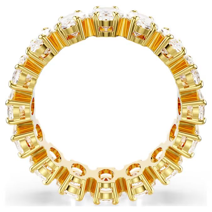 Sa punim krugom Swarovski Zirconia u ovalnom kroju, ovaj Matrix prsten donosi izgled koji je istovremeno jedinstven i luksuzan. Kristali su postavljeni u sofisticirani držač sa završnicom u zlatnom tonu, stvarajući blistav i topao efekat. Nosite ovaj prsten kao jedan od svojih omiljenih komada kada želite da izrazite lični stil.