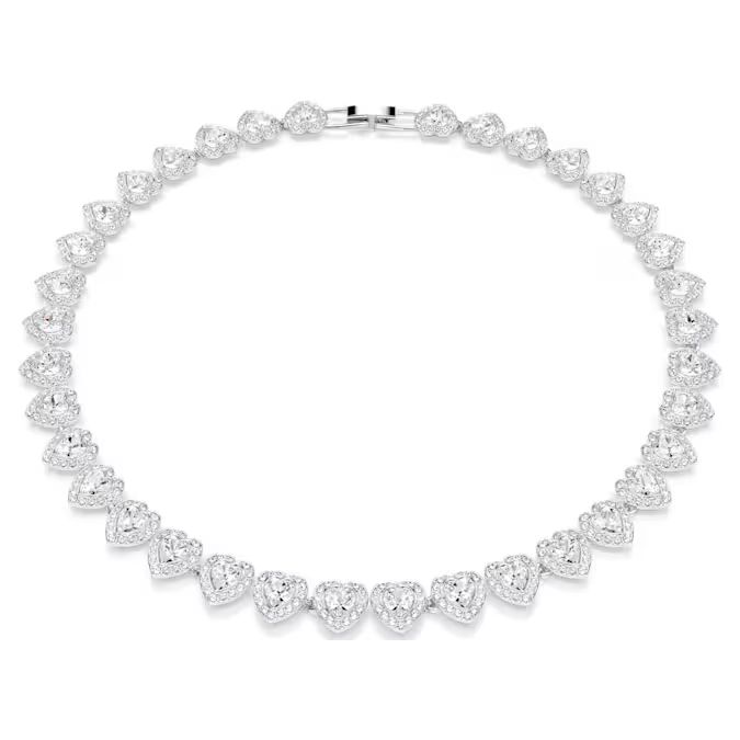 Ova ogrlica, nastala kao plod uzbudljive saradnje Ariana Grande x Swarovski, baca novo svetlo na ljubav i romantiku. Slavite ljubav uz ovu blistavu ogrlicu koja podjednako odiše romantikom i luksuzom. Dizajn sa rodijumskom prevlakom karakteriše pun krug kristala u obliku srca, gde je svako srce dodatno uokvireno svetlucavim halo okvirom od prozirnog pavé kristala. Ova kreacija iz ekskluzivne saradnje donosi spoj pop-zvezdanog glamura i vrhunske Swarovski izrade.