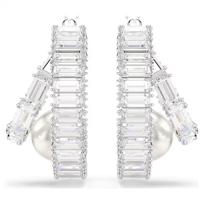 Ove minđuše iz ekskluzivne kolekcije Ariana Grande x Swarovski donose moderan preokret klasičnom stilu alki. Svaki komad sa rodijumskom prevlakom u potpunosti je optočen Swarovski Zirconia kamenjem u elegantnom „baguette“ rezu. Za dodatni nivo luksuza, na samoj bazi svake alke postavljen je po jedan diskretan Swarovski kristalni biser, čineći ovaj dizajn sofisticiranim i smelim u isto vreme.Ove alke su savršen izbor za one koji vole geometrijsku preciznost i prefinjene detalje.Nosite ih uz podignutu kosu kako biste u potpunosti istakli njihov raskošni dizajn, ili ih kombinujte sa drugim komadima iz iste kolekcije za maksimalan učinak.