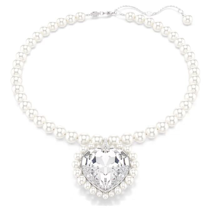 Prožeta najfinijim Swarovski umećem (savoir-faire), ova ultra glamurozna ogrlica slavi luksuz i svetlost. Dizajn sa rodijumskom prevlakom koristi Swarovski kristalne bisere do njihovog maksimalnog efekta, postavljajući ih duž samog lanca, kao i u različitim veličinama oko centralnog kristala u obliku srca. Ovaj prelepo izrađen komad nakita iz saradnje Ariana Grande x Swarovski idealan je izbor za vas ili kao radosni dar ljubavi za osobu koju obožavate.