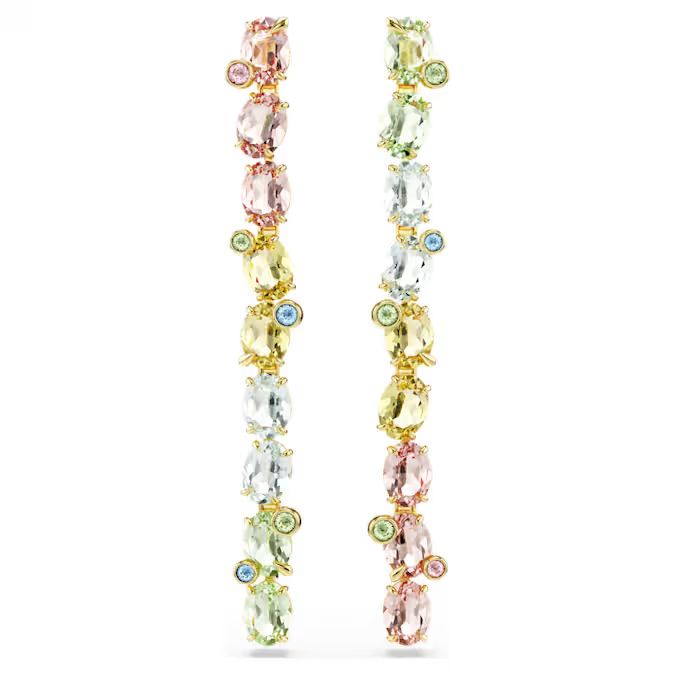 Unesite eksploziju boja u svoj stil uz ove razigrane minđuše za probušene uši. Svaki komad sa pozlatom u tonu zlata karakteriše dugačak niz krupnih kristala u različitim nijansama, dopunjen manjim kristalima koji su smešteni u radosna, zaobljena metalna ležišta. Ovaj kaskadni dizajn je neočekivan, veseo i spreman da vam ulepša dan, pružajući svakom pokretu glave poseban sjaj.
