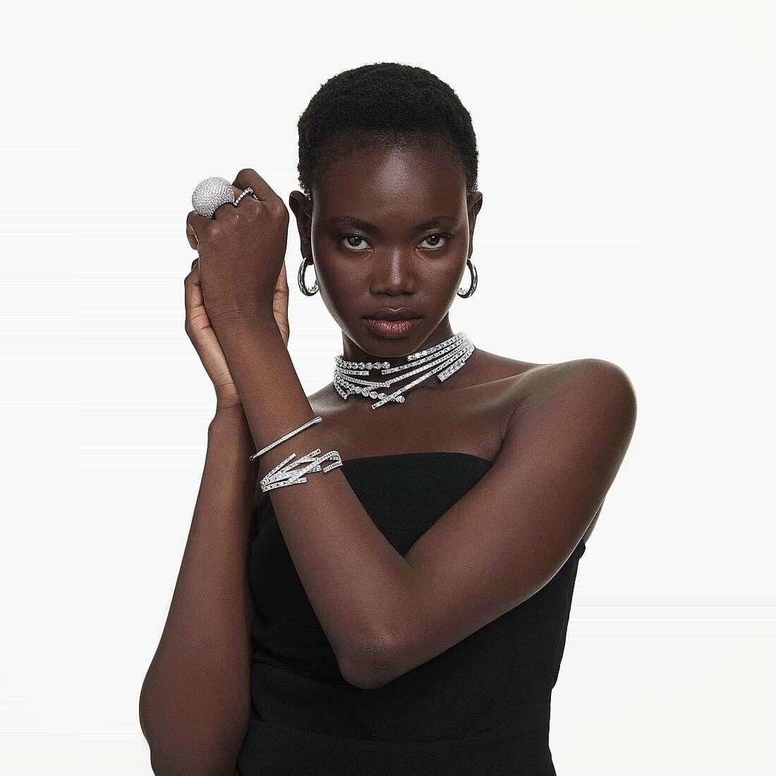 Kao jedan od najpopularnijih Swarovski stilova, ova Dextera narukvica predstavlja oličenje moderne elegancije. Tanak osmougaoni profil sa rodijumskom prevlakom ukrašen je nizom precizno sečenih kristala, postavljenih u prefinjena "claw" ležišta. Ovaj komad nakita daje upečatljivu notu svakom stilu, bilo da se nosi samostalno ili u kombinaciji sa drugim narukvicama za maksimalan sjaj.