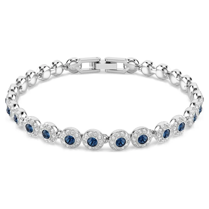 Pripremite se da zablistate uz ovu očaravajuću narukvicu iz porodice Una Angelic. Dizajn sa rodijumskom prevlakom čine nizovi precizno sečenih okruglih kristala u intenzivnoj plavoj nijansi, dodatno naglašenih svetlucavim pavé okvirima. Ova kombinacija boja i tekstura stvara luksuzan izgled koji privlači poglede u svakoj prilici.Ova narukvica je stvorena za one koji vole da ostave snažan utisak. Da biste postigli maksimalan efekat i potpunu harmoniju stila, uparite je sa matching ogrlicom Una Angelic necklace - 5733402. Plava boja kristala najbolje dolazi do izražaja uz crne, srebrne ili bele odevne kombinacije.