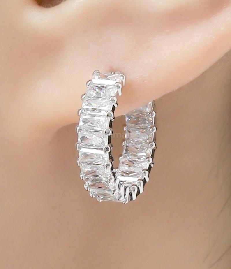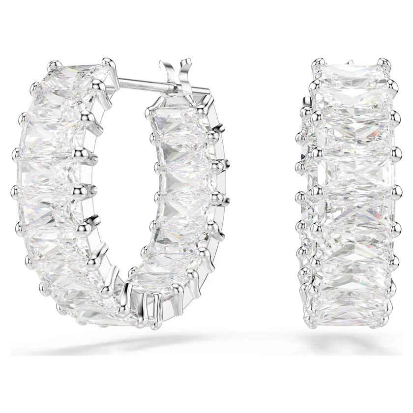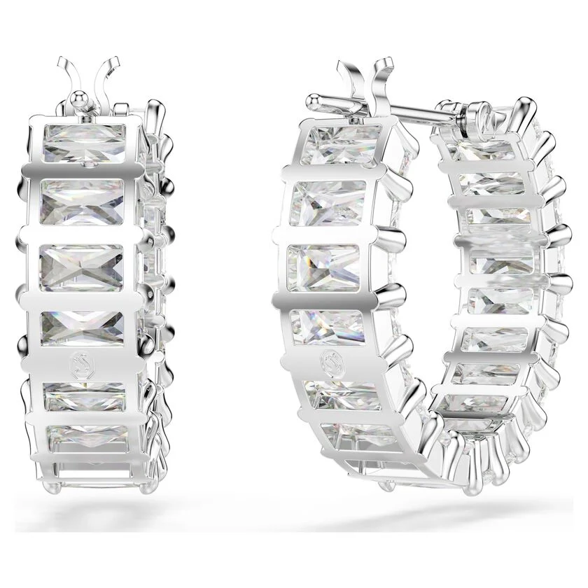 Osvežite svoj stil dozom čiste svetlosti iz kolekcije Matrix. Ove minđuše u obliku malih alki, sa rodijumskom prevlakom, krasi niz baguette-cut Swarovski Zirconia kamenja postavljenih u klasične „prong“ ležišta. Specifičan pravougaoni rez kristala daje im moderan, arhitektonski izgled i stvara oreol blistavosti oko vašeg lica.Zahvaljujući svom svedenom, a efektnom dizajnu, ove minđuše su savršen izbor za „ear stack“ (nizanje više minđuša). Za maksimalan sjaj, uparite ih sa Matrix ogrlicom iz iste kolekcije.