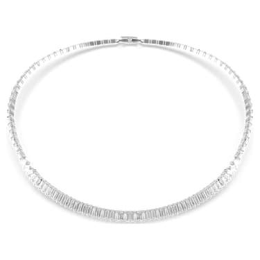 Ova Matrix ogrlica je definicija modernog luksuza, dizajnirana da pruži neprekidan niz sjaja koji uokviruje dekolte sa vrhunskom prefinjenošću.Čitav niz ogrlice krase Swarovski cirkoni u baguette rezu, koji su poznati po svom arhitektonskom izgledu i načinu na koji reflektuju svetlost u dugim, jasnim linijama. Svaki kamen je pažljivo postavljen u prong (zubčastu) postavku, čime se postiže maksimalna blistavost iz svakog ugla.