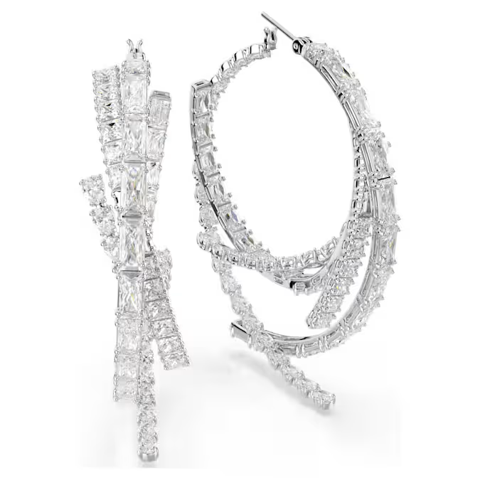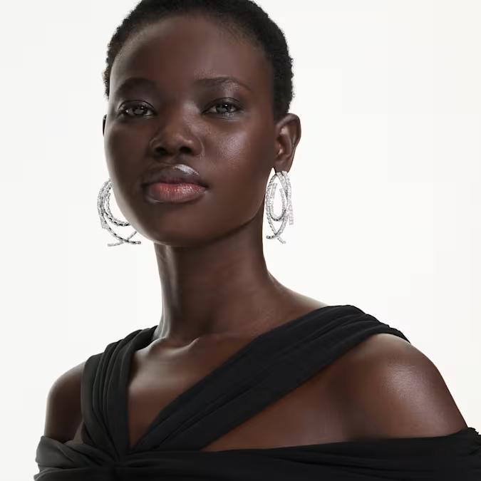 Podignite svoj stil na viši nivo uz ove upečatljive minđuše koje zrače luksuzom. Svaki komad krasi dinamičan niz Swarovski cirkona različitih rezova, precizno postavljenih u reflektujuću rodijumsku prevlaku. Ovaj spoj stvara fascinantan prelamajući efekat svetlosti, čineći minđuše idealnim izborom za trenutke kada želite da dominirate prostorijom.