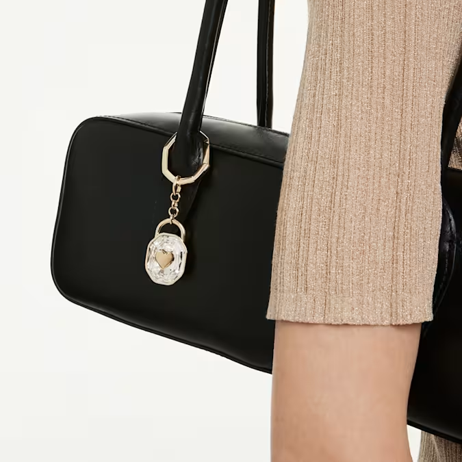 Izrađen u obliku katanca, ovaj privezak za ključeve sa pozlatom simbolizuje večnu ljubav i nepokolebljivo prijateljstvo. Luksuzni dizajn karakteriše osmougaona karika povezana sa velikim prozirnim kristalom koji u samom centru nosi srce. Poklonite ovaj privezak za ključeve posebnoj osobi kako biste izrazili svoja iskrena osećanja. Ovaj privezak je sjajna ideja za luksuzan poklon koji nije klasičan nakit.
