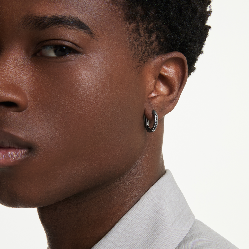 Swarovski Dextera: Crne Octagon minđuše - Geometrijska preciznost i mistični sjaj. Ove moderne alkice u obliku osmougla donose savršen balans između hrabrog dizajna i diskretne elegancije. Jedan niz crnih okruglih kristala postavljen je u prefinjeni „prong“ ram, stvarajući snažan vizuelni utisak.