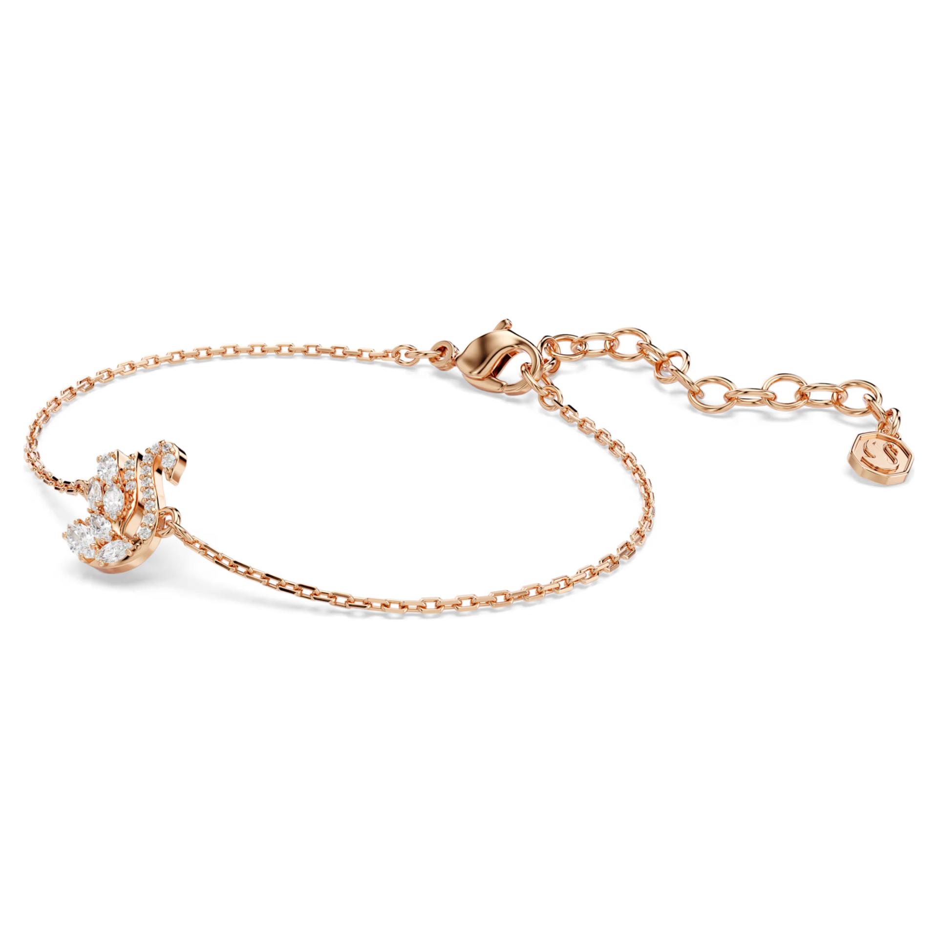 Swan: Simbol ljubavi i večnosti Ova nežna narukvica interpretira legendarnog Swarovski labuda u toploj pozlati boje ružičastog zlata. Ukrašena Swarovski cirkonima okruglog i marquise reza, ona slavi lepotu i radost. Podesiva je i savršena za kombinovanje sa odgovarajućim priveskom za maksimalnu eleganciju.