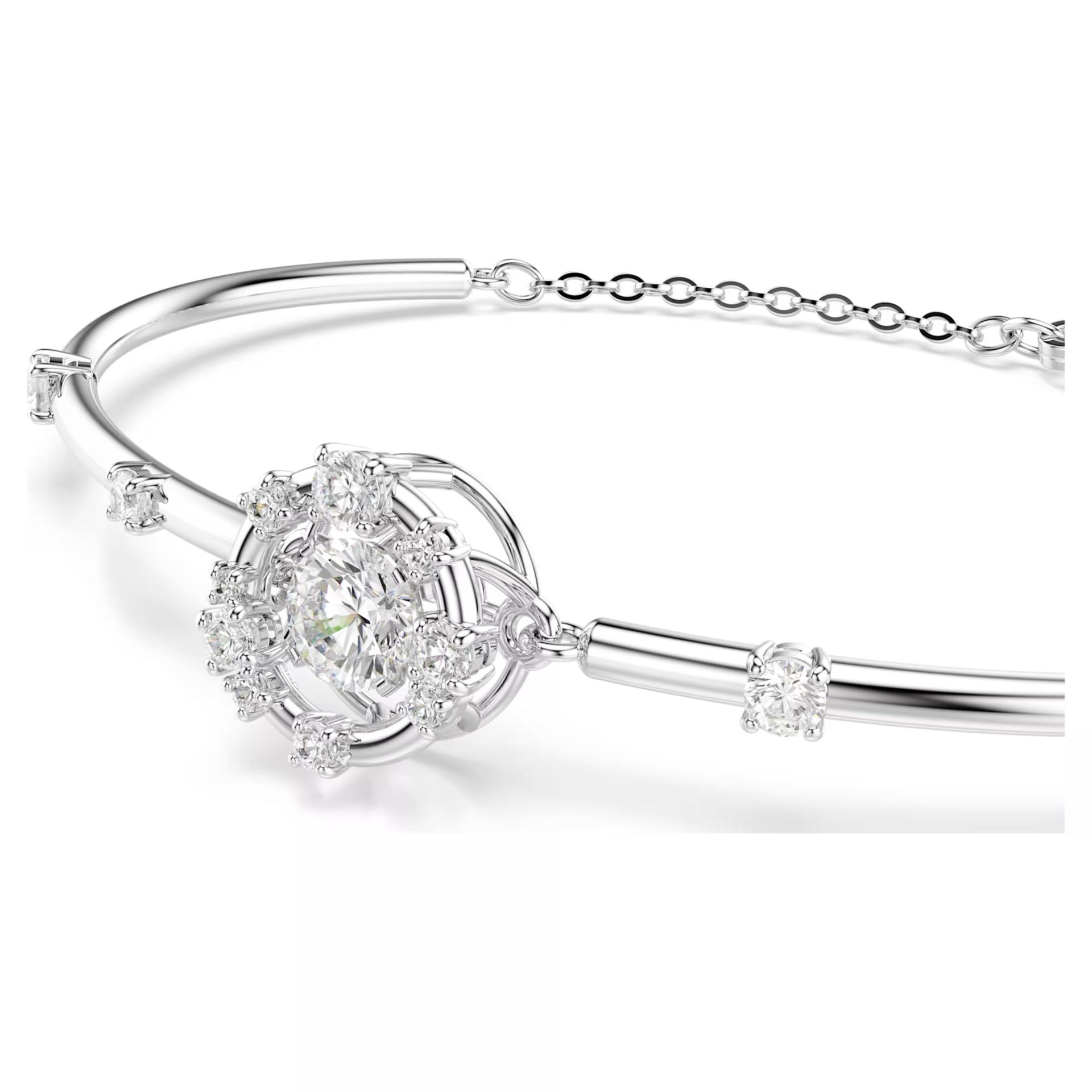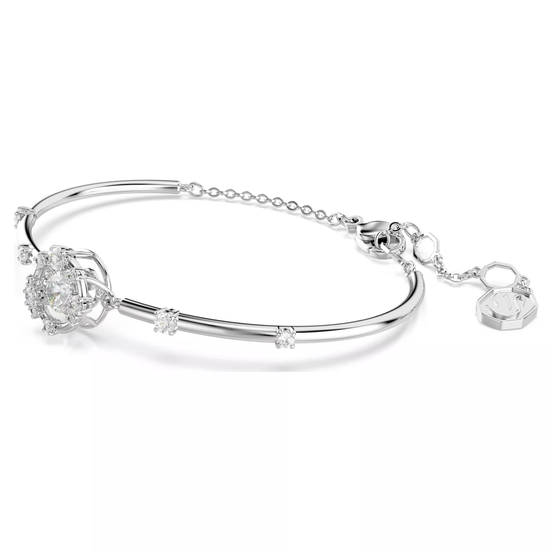 Constella: Zvezdani sjaj i „plešući kamen“ Inspirisana zvezdama, ova Constella narukvica sa rodijumskom prevlakom dizajnirana je da uvek bude u centru pažnje. U njenom srcu nalazi se inovativni „plešući kamen“ koji treperi pri svakom pokretu, dok sitni Swarovski cirkoni dodatno naglašavaju njen kosmički sjaj. Prefinjen komad za stil koji doseže do zvezda.