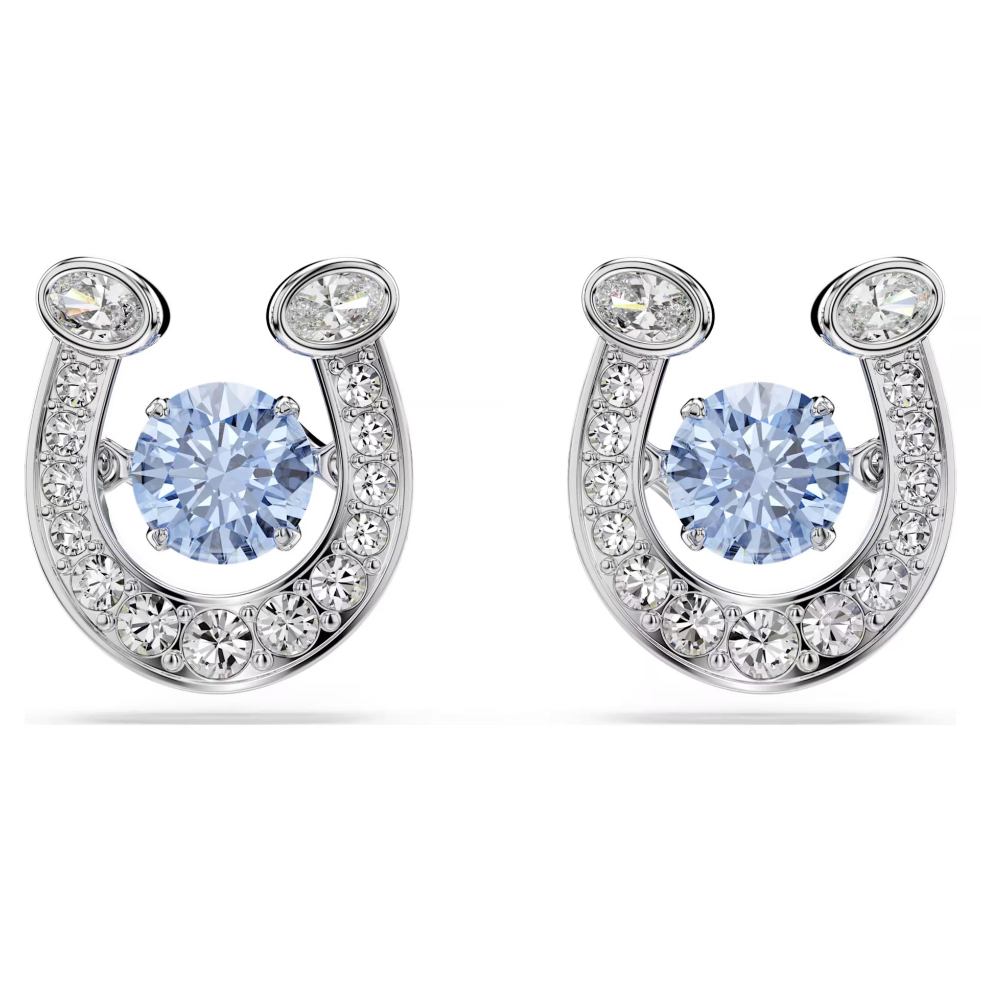 Symbolica – Srećna potkovica sa "plesnim" kamenom Prigrlite slobodan duh uz ove upečatljive Swarovski minđuše. Svaka potkovica sa rodijumskom prevlakom u svom centru krije plavi "plesni" kamen (dancing stone) koji se neprestano pomera i stvara igru svetlosti pri svakom vašem pokretu. Idealan poklon za one koji teže uspehu i vole nakit sa značenjem.