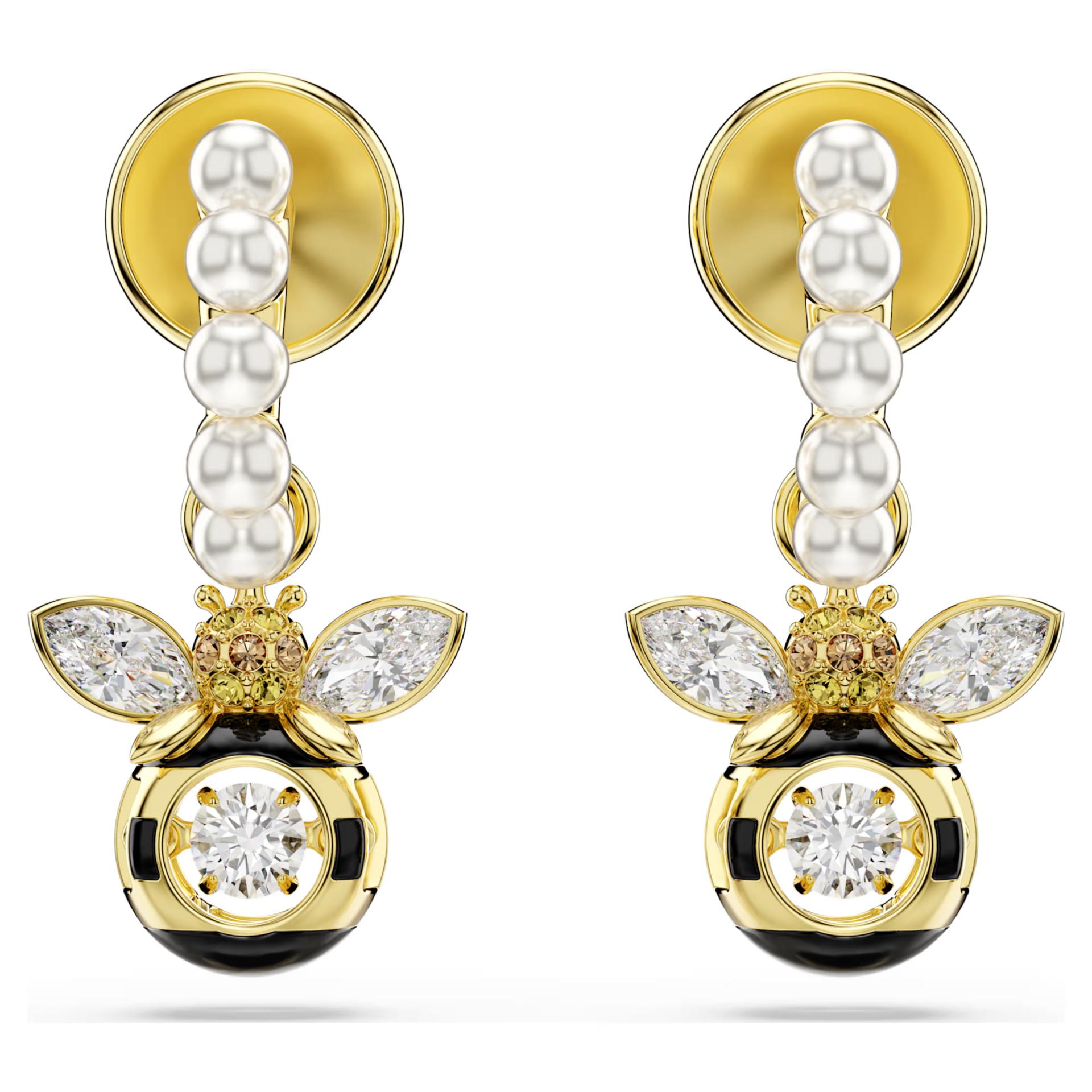 Ove ljupke Idyllia minđuše kombinuju dve pčelice koje kao da vibriraju od svetlosti. Svaka pčela sa pozlatom u boji zlata postavljena je na malu alku ukrašenu mikro Swarovski kristalnim biserima, dok se u samom centru nalazi prozirni „plesni“ kamen (dancing stone) za beskrajan odsjaj. Uparite ih sa čokerom, prstenom ili narukvicom sa motivom pčele kako biste kreirali sopstvenu „košnicu“ komada inspirisanih prirodom.