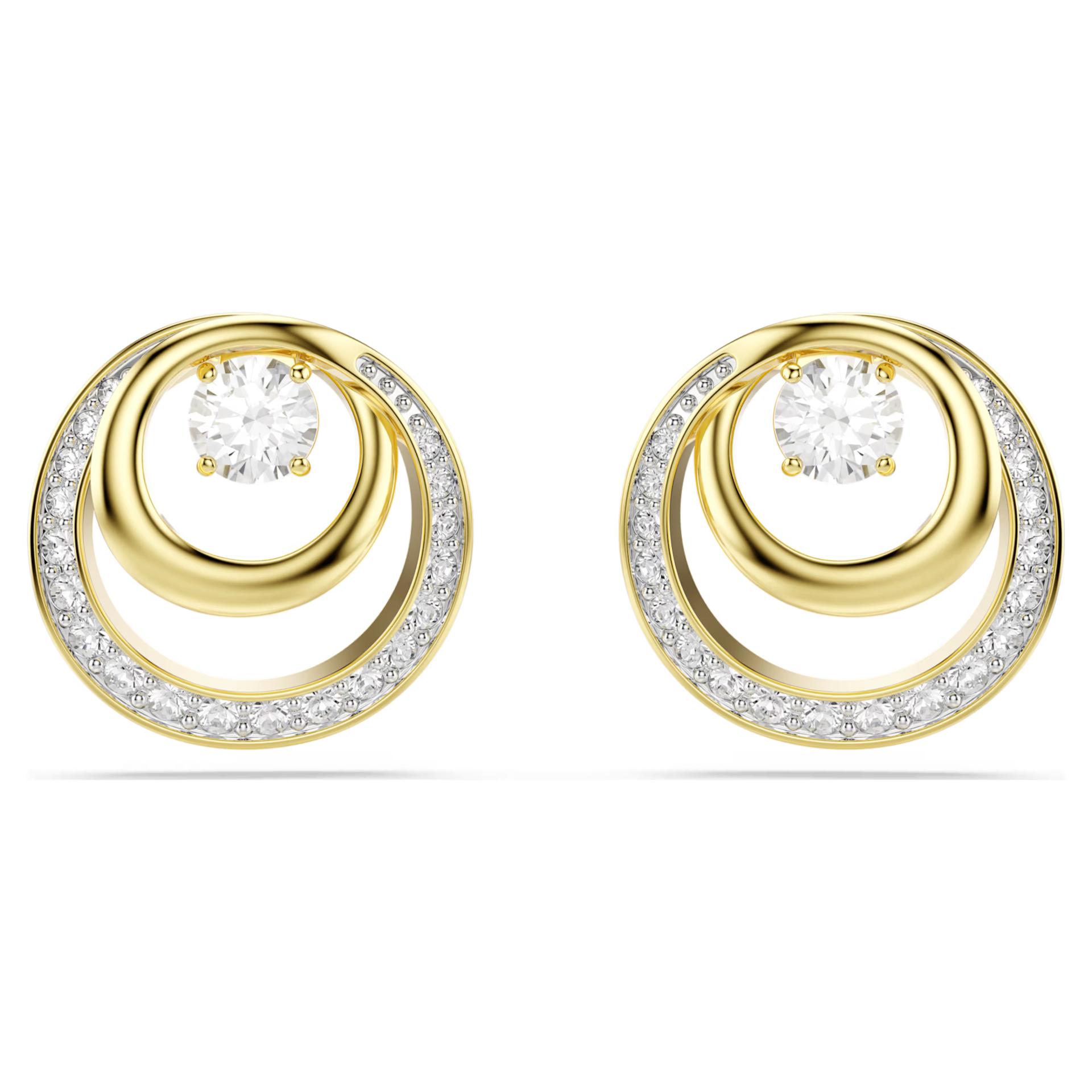 Prihvatite kružni stil ovih Hyperbola minđuša sa pozlatom. Svaki hipnotišući komad krasi centralni Swarovski cirkon okružen metalnim spiralama i svetlucavim pavé-om. Nosite ih uz odgovarajuću ogrlicu ili prsten kako biste naglasili modernu sofisticiranost.