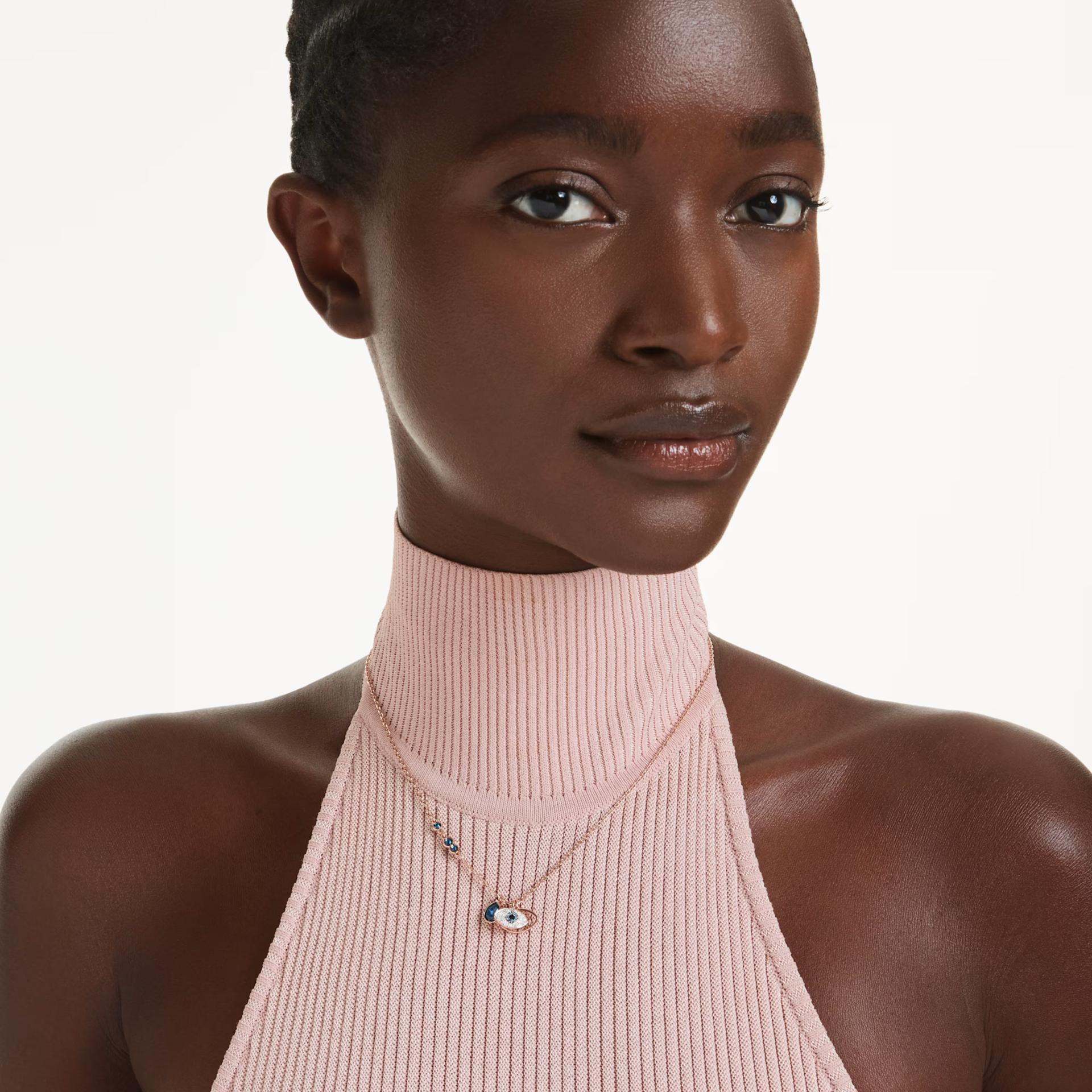 Ovaj „Evil Eye“ (urokljivo oko) privezak dodaje mističnu notu svakom izgledu. Karakterišu ga dva motiva: jedan ukrašen plavim, crnim i prozirnim kristalnim pavé-om, i drugi izrađen od metala sa pozlatom u boji ružičastog zlata. Privezak dolazi na lancu sa pozlatom u boji ružičastog zlata, dodatno ukrašenim tamnoplavim kristalima. Termin „pavé“ se odnosi na tehniku postavljanja mnoštva malih kristala blizu jedan drugom, tako da površina izgleda kao da je „popločana“ sjajem. Ovaj model se često kombinuje sa drugim tanjim ogrlicama.