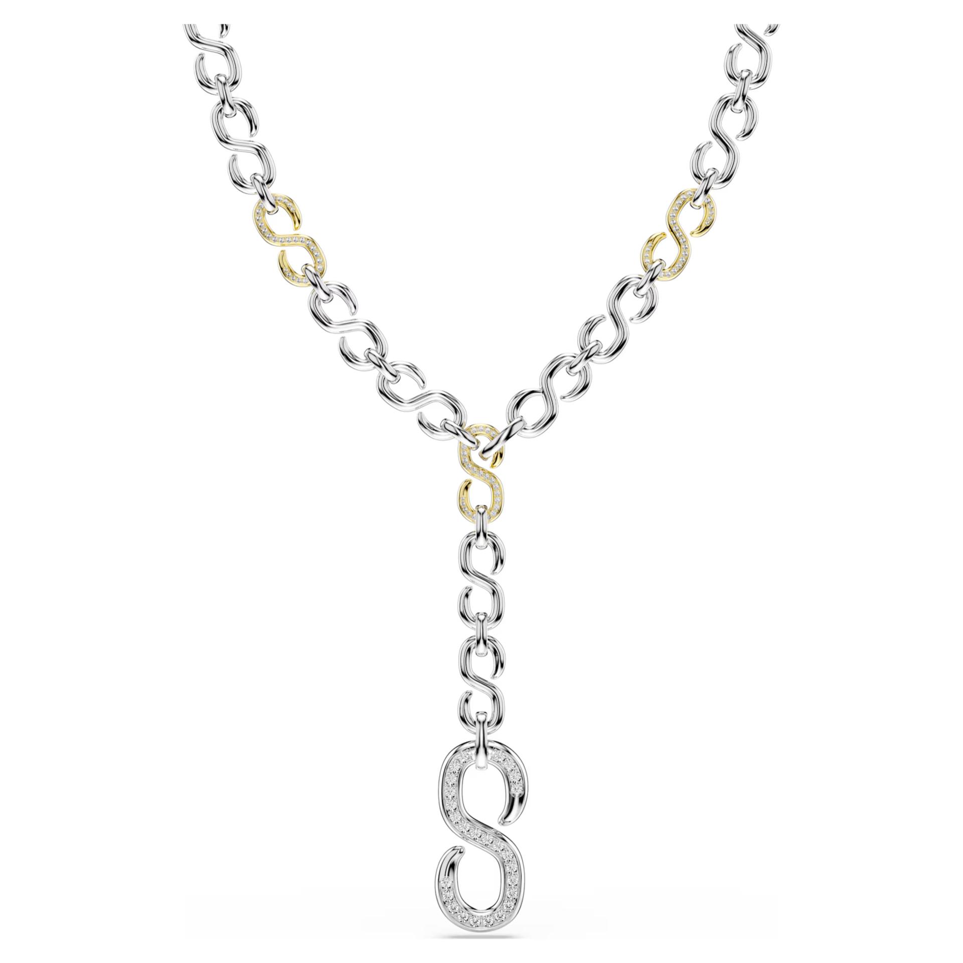 Swarovski Dextera: Multifunkcionalna elegancija Ova ogrlica iz Dextera kolekcije nudi neverovatnu svestranost – nosite je kao dugačak, klasičan niz ili je transformišite u moderan "Y" oblik. Dizajn spaja karike u boji zlata i rodijuma, ukrašene prozirnim kristalima za maksimalan sjaj. Poseban detalj je veliki „S“ motiv koji možete lako dodati ili skinuti zahvaljujući integrisanoj kopči, prilagođavajući nakit vašem stilu.