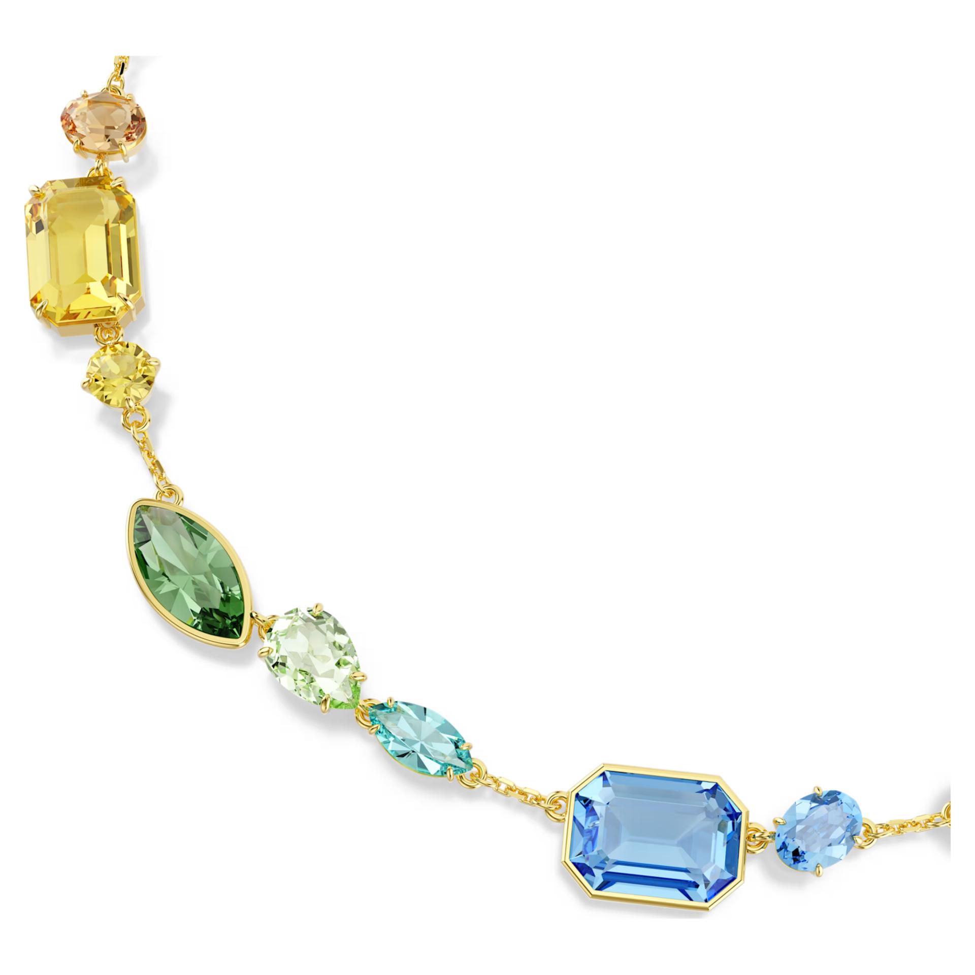Swarovski Gema: Vaša paleta radosti Oslobodite svoju kreativnu stranu uz ovu upečatljivu ogrlicu koja slavi bogatstvo boja. Dizajn u toploj zlatnoj nijansi spaja mnoštvo različitih oblika i veličina kristala, uključujući održive Swarovski ReCreated™ modele. Ono što je čini posebnom je mogućnost personalizacije – na nju lako možete dodati Idyllia priveske i kreirati unikatni komad nakita koji priča vašu priču.